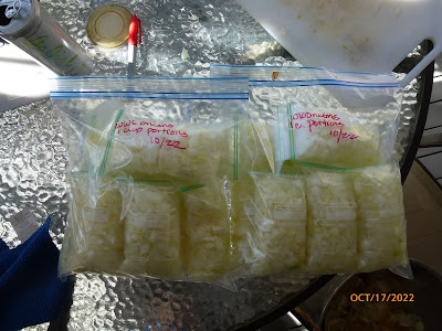 I got a late start to the day, but I knew I still had to get my "to do" list done. On the top of that list was processing most of the Walla Walla Sweet onions that I had grown and getting them cut up and frozen before they went bad. We do love Walla Walla Sweet onions because they are milder in flavor, and we really enjoy that.